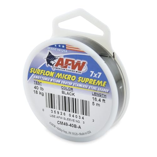 American Fishing Wire Surflon Micro Supreme, nylonbeschichteter 7 x 7 Edelstahlvorfachdraht, 18 kg getestet, 0,61 cm Durchmesser, Schwarz, 5 m