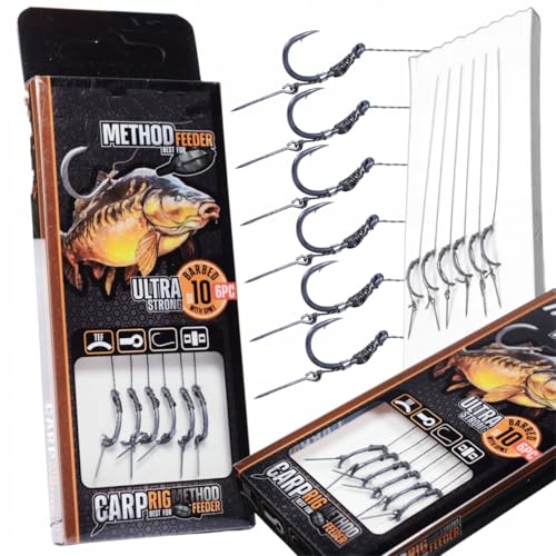 Das A&N Method Feedervorfach Feederhaken Set Hair-Rig Nadel Hakengröße 8-14 – 6 Stück (12) ist ein perfektes Werkzeug für Karpfen- und Feederangeln. Es besteht aus einem kompletten Satz von sechs fertigen Methoden-Feedervorfächern mit Hair-Rig, die leicht und schnell eingesetzt werden können.