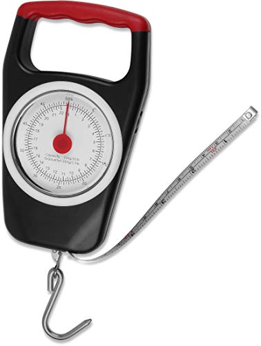 Analoge Handwaage mit Maßband und Haken, bis zu 22 kg, TARA-Funktion.