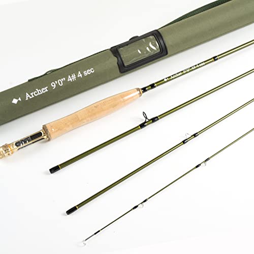 AnglerDream Archer Fliegen Angel 4 Abschnitt 3/4/5/8 WT Fast Action dunkelgrün Fliegenrute Graphit im 10/36T Carbon Fiber Fliegenrute Golden Aluminium-CNC Reel Sitz mit Cordura Tuch Tube, Archer 9044