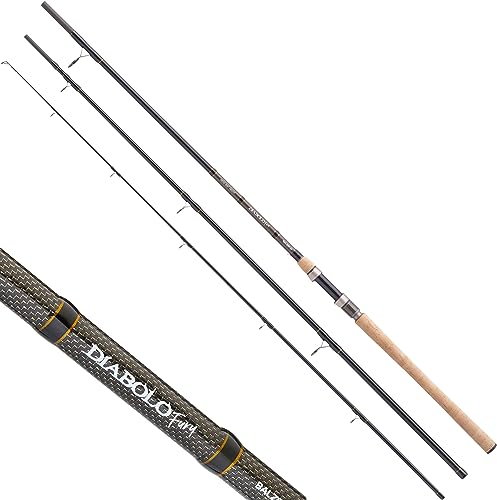 Die Angelrute hat eine Länge von 3,60 m und eine Transportlänge von 1,30 m. Mit einem Gewicht von nur 345 g und einem Wurfgewicht von 35 – 90 g ist sie äußerst handlich und dennoch leistungsfähig. Egal ob beim Bootsfischen oder vom Ufer aus, die Diabolo Fury wird dir stets treue Dienste leisten.