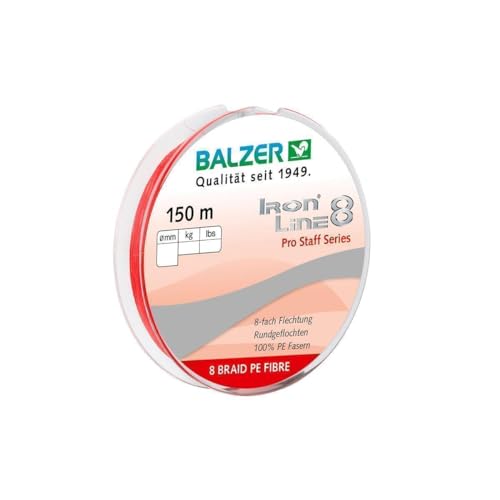 Balzer Iron Line Pro Staff 8 rot – 150m geflochtene Schnur, Durchmesser/Tragkraft:0.14mm / 10.7kg