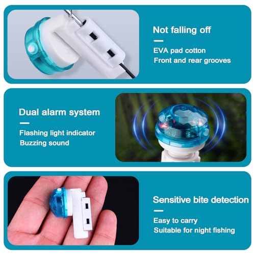BORDEAG Bissanzeiger Angeln,3 Stück Angeln Alarm Glocke,Nachtlicht Knicklicht Angeln,Led Bissanzeiger Rutenspitze,Strike LED Alarm Leuchte Angeln Für Nachtangeln Oder Meeresangeln