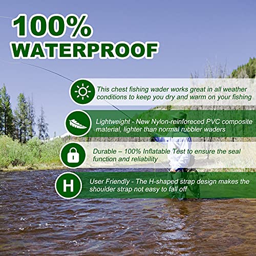 Diese Wathose ist nicht nur wasserdicht, sondern auch leicht und langlebig. Sie besteht aus einer verbesserten Nylon-Qualität mit einer zweilagigen Konstruktion aus 70D Nylon und PVC, was sie robuster macht als herkömmliche Wathosen. Diese Kombination aus Materialien garantiert eine überlegene Haltbarkeit und Widerstandsfähigkeit – ideal für alle, die viel Zeit in der Natur verbringen.