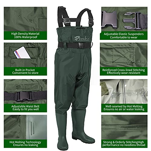 Ausgestattet mit einer Kombination aus hochwertigen PVC- und Nylonmaterialien, bietet die Wathose die nötige Robustheit und Langlebigkeit. Die fortschrittliche Bonding-Technologie sorgt dafür, dass Sie sich auf eine 100% wasserdichte Erfahrung verlassen können – Ihre Hosen und Socken bleiben garantiert trocken!
