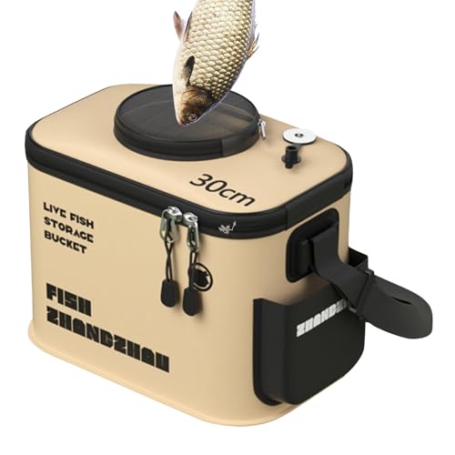 Der Angeleimer ist aus hochwertigen Materialien hergestellt und so gebaut, dass er den Strapazen der Verwendung im Freien standhält. Sein robustes Design sorgt dafür, dass es das Gewicht von lebenden Fischen bewältigen kann.