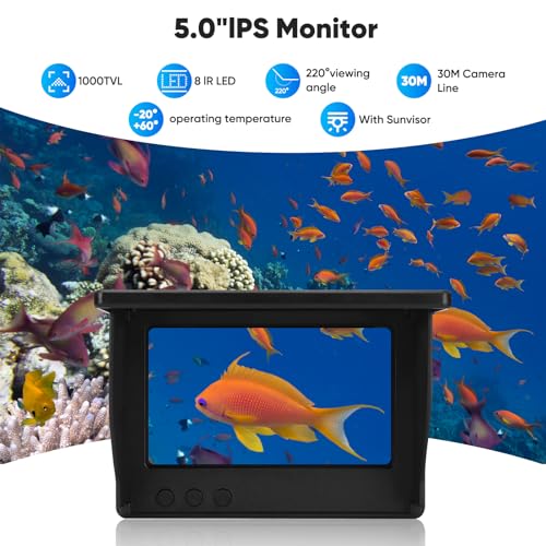 Fischfinder,Unterwasserkamera Angeln mit 5 Zoll IPS-Display, 8000mAh Akku, 220° Weitwinkel-Nachtsicht, IP67 wasserdicht fishfinder, ideal für Meeresangeln, Flussangeln und Eisfischen