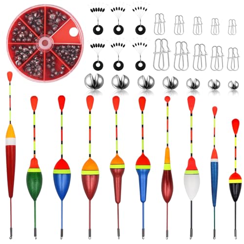 Das Fzyisw Posen Angeln Set ist ein umfassendes Angebot für alle Angler, das alles bietet, was Sie benötigen, um Ihre Angelkünste zu verbessern. Das Set enthält 10 Schwimmer in verschiedenen Größen, 54 Angelblei und 6 Gummistopper-Angeln.