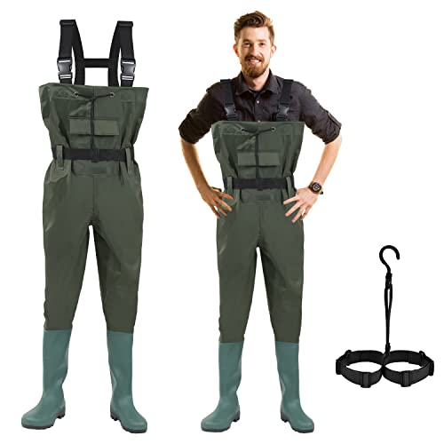 Gimisgu Wathose 70 Denier Nylon, PVC Angelhose, wasserdichte Fischteichhose mit Gummistiefeln, Bund, Taschen, und EIN kostenloser Haken, geeignet für Angeln, Jagd, Autowäsche, Bauernhof(EU 43)