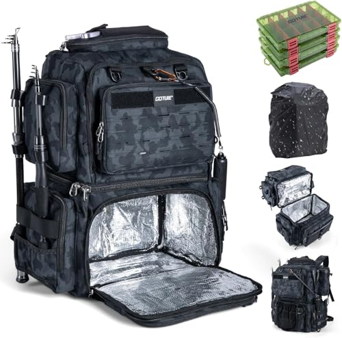 Der Goture Angelrucksack mit 4 Köderbox Angeln ist der perfekte Begleiter für jeden Angler. Mit seinen 53 Litern Fassungsvermögen bietet er ausreichend Platz für Ihr gesamtes Angelzubehör.