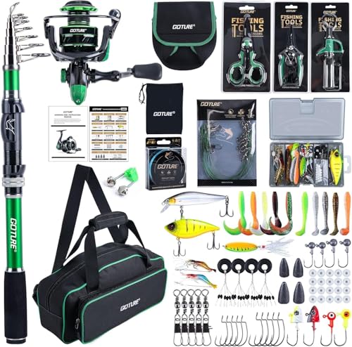 Das Goture Angelset Komplett (24T Carbon) ist ein professionelles Angeln-Kit, das alles bietet, was Sie f“ür einen perfekten Angelausflug benötigen. Das Set besteht aus einer 24T-Teleskoprute aus Kohlefaser und Spinnrolle mit 9+1 gekapselten Kugellagern, die eine optimale Balance zwischen Kraft und Präzision bieten.