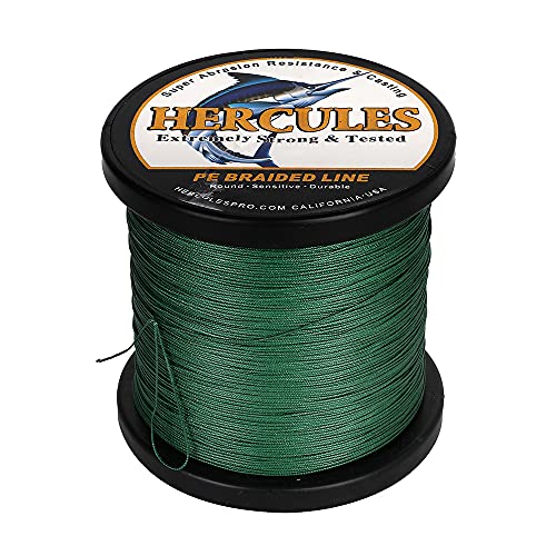 HERCULES Geflochtene Angelschnur 12 Stränge, 100-2000m 109-2196 Yards Geflochtene Fisch Linien, 10lb – 420lb Test-PE-Schnüre für Salzwasser-Süßwasser – Grün, 30lbs, 1000m