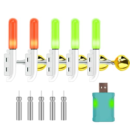 JCSJK 5pcs LED Knicklichter Angeln, Bissanzeiger Rutenspitze Wasserdicht mit Alarm Glocke Schnalle für Angelruten Pose Thanksgiving
