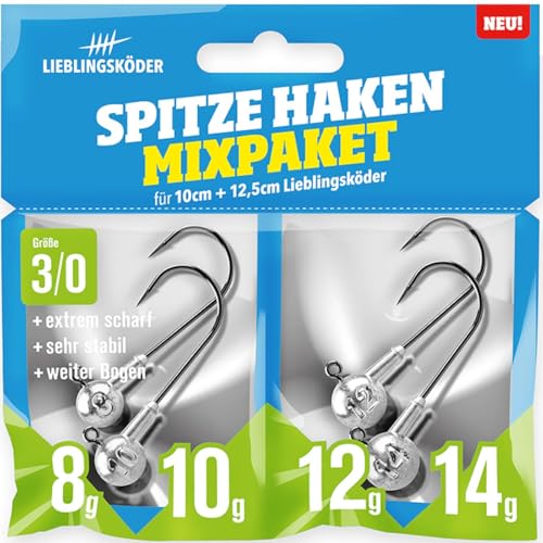 Das Lieblingsköder Spitze Haken 3/0 Mixpaket ist ein perfektes Paket für alle Angler. Es enthält 4 Jigköpfe in verschiedenen Größten, die ideal für Gummifische, Gummiköder und Blei-Fliegen geeignet sind.