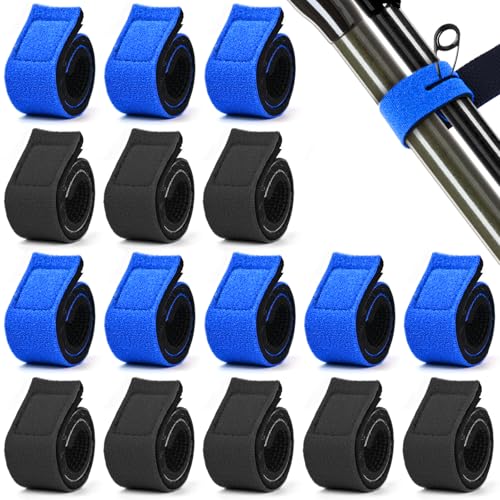 luckaide Angelruten Gurte 16 Stück Angelrute Gürtel 2 Farben Angelrutenriemen, Angelrute Klettverschluss Riemen einstellbar, Elastische Angel Rutenbänder mit Schnalle für Angelruten