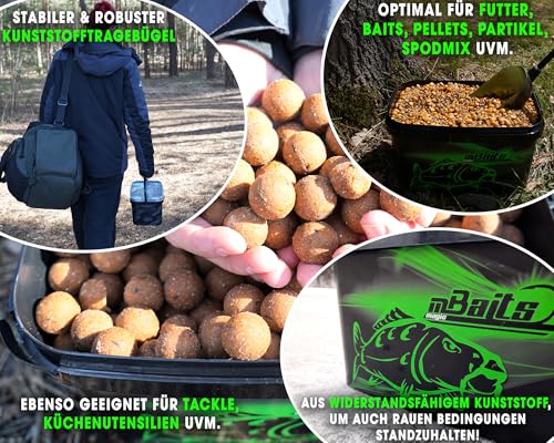 Hergestellt aus robustem Kunststoff, ist der Magic Baits Bucket sowohl langlebig als auch widerstandsfähig. Damit trotzt er den rauen Bedingungen beim Angeln. Der stabile Tragegriff sorgt dafür, dass Sie auch bei schwerem Inhalt keine Probleme beim Transport haben – einfach und unkompliziert.