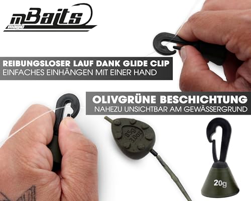 Ein herausragendes Merkmal dieser Absenkbleie ist der integrierte Glide-Clip. Dieser sorgt für einen reibungslosen Lauf auf allen Hauptschnüren und lässt sich bequem mit einer Hand bedienen. Dadurch wird das Fischen einfacher und effizienter, sodass Sie sich voll und ganz auf das Angeln konzentrieren können.