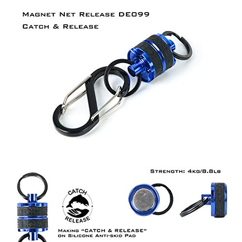 Der Kescherhalter punktet mit einer magnetischen Kraft von bis zu 8,4 kg, die dafür sorgt, dass Ihr Kescher sicher an Ort und Stelle bleibt. Der robuste Kescherclip lässt sich schnell und einfach an der D-Ring-Schlaufe Ihrer Weste befestigen, sodass Sie jederzeit bereit sind, den Kescher ins Wasser zu werfen.