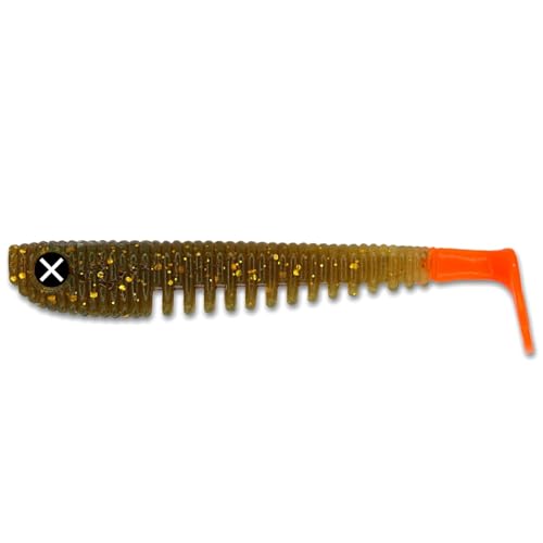Dank seiner speziellen Bauchrillen reagiert der King Lui bereits bei leichtem Zug und lockt so die Fische an. Der Paddelschwanz sorgt für eine natürliche Aktion, während die Tasche für Offsethaken das Gerät auch am Texas- oder Carolina Rig verwenden lässt.