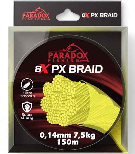 Die Paradox Fishing 8X PX geflochtene Angelschnur ist die perfekte Wahl für jeden Spinnfischer. Mit ihrer Chartreuse gelben Farbe ist sie besonders gut für das erkennen von Bissen geeignet.