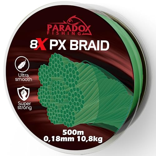 Paradox Fishing 8X PX geflochtene Angelschnur I Tarngrün 500M – 0,18mm – 10,8kg – Angelschnur geflochten- 8fach eng geflochten