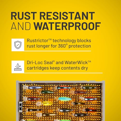 Mit einem durchdachten Beschriftungssystem ausgestattet, das vorgeschnittene, belüftete Trennwände beinhaltet, sorgt diese Box für eine sichere und effiziente Organisation Ihrer Angelgeräte. Das wasserabsorbierende Trockenmittelmaterial hält Ihre Ausrüstung in optimalem Zustand.