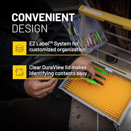 Ein weiterer Vorteil ist die spezielle Gestaltung für das Stapeln mehrerer Einheiten. Diese Box hat die optimalen Maße für Low-Profile-Such- und Spinnköder mit einer Größe von 14 L x 6.25 W x 7.71 cm, was sie ideal für den Transport und die Lagerung macht.