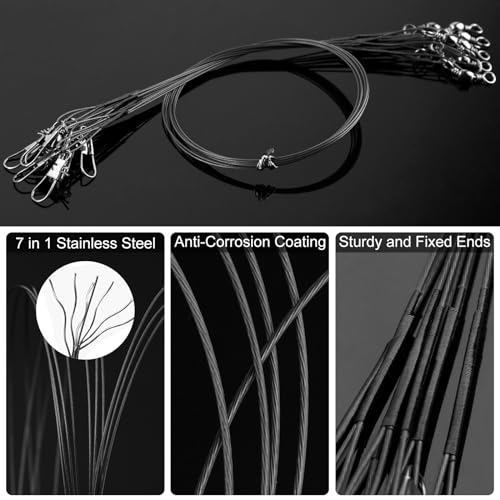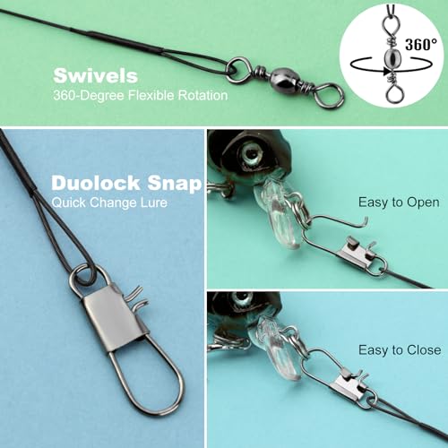 Realure 50 Stücke Stahlvorfach Hecht Angeln Set mit Wirbel & Snaps, 5größen Edelstahl Fischen Angelzubehör Raubfisch, Vorfach Angeln Vorfächer zum Spinnangeln, Vorfachschnur Für Salzwasser Süßwasser