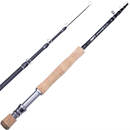 RIFT Apache II Fliegenfischrute – Teleskop-Angelrute aus Kohlefaser – einteilige Reise-Angelrute – schnelle Aktion Fliegenrute mit Aluminium-Rollensitz, Edelstahlführungen und klappbarem Hakenhalter