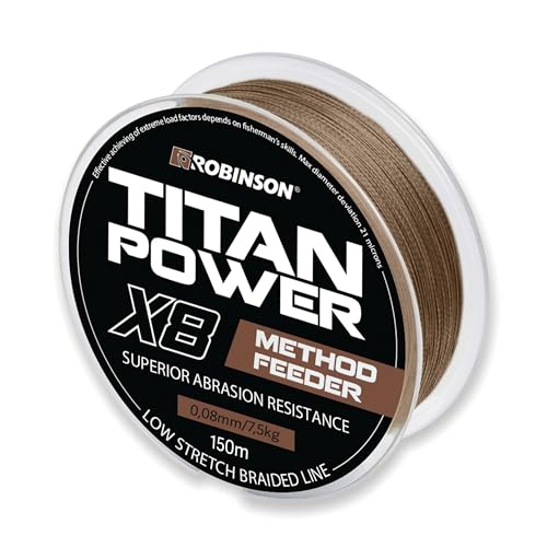 Robinson Geflochtene Angelschnur X8 – Angelschnur geflochten, 0,08mm – 7kg – 150m, Abriebfest und dehnungsarm, Ideal für Feeder- und andere Grundangeltechniken- Titan Power