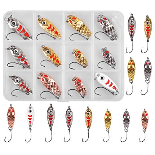 SHADDOCK Forellen Spoons Kunstköder Kit-12stk Blinker zum Angeln Forellenköder Spinner Angelköder Set in Box Angelset mit Einzelhaken für Barsch Saiblin (Set A)