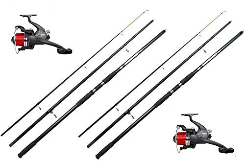 Das Set besteht aus drei Teilen: einer Brandungsrute mit Hochseerolle und einer Hochseeschnur. Die Rute ist 4,2 Meter lang und ideal für Karpfen-Fang, der Spinning- oder Beidhändig-Angel.