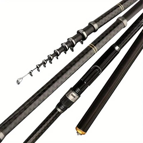 SylvanFlux Teleskop-Angelrute Meeresrute aus Carbon, Hand- & Meeresangeln, Schwarze Soft-Aktion, Stabiler Rollenhalter, Keramikringe, Metallendkappe (Spinnen, Zentimeter, 540, Leicht)