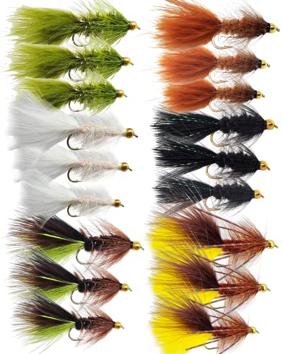 Unser Sortiment umfasst 18 verschiedene Fliegen in verschiedenen Farben wie Olivgrün, Schwarz, Weiß, Olivgrün/Schwarz, Braun sowie mehrfarbige Kombinationen. Sie finden auch die perfekte Größe für Ihren Fischfang!