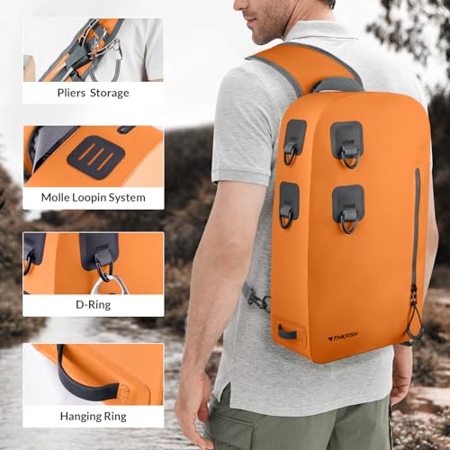 Gefertigt aus 840D-Oxford-Gewebe und einer doppelseitigen wasserdichten TPU-Beschichtung überzeugt der Angelrucksack durch seine dauertaugliche und wasserdichte Bauweise. Er schützt Ihre Ausrüstung effektiv vor Wasser und Schmutz, so dass er ideal zum Fliegenfischen, Kajakfahren oder bei anderen Outdoor-Aktivitäten geeignet ist.