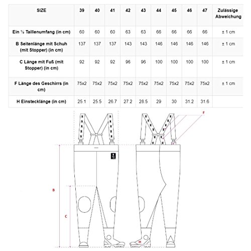 Die Wathose ist nicht nur funktional, sondern auch benutzerfreundlich gestaltet. Dank der stabilen und rutschfesten Sohle können Sie sicher im Wasser stehen und bewegen. Egal ob beim Angeln, beim Arbeiten an Teichen oder einfach beim Spielen im Wasser – mit dieser Hose sind Sie bestens ausgestattet.
