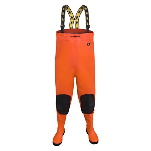 Die Wathose S5 Sicherheitsstiefel in leuchtendem Orange und Gelb bietet 100% Wasserdichtheit, ist bis -50 Grad einsetzbar und entspricht den höchsten Sicherheitsstandards der Kategorie S5. Ideal für Angeln, Teicharbeiten und mehr!