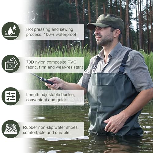 Die Yakimz Wathose ist die optimale Wahl für alle Outdoor-Enthusiasten, die bei jedem Wetter und in jeder Umgebung fischen oder arbeiten möchten. Hergestellt aus 70 Denier Nylon und PVC, garantiert diese Hose vollständige Wasserdichtigkeit, sodass Sie sich ganz auf Ihr Erlebnis konzentrieren können – sei es beim Angeln, Bootfahren oder auf der Baustelle.