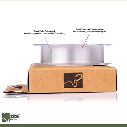 Die Schnur kommt in einem durchsichtigen Design und ist somit nahezu unsichtbar im Wasser, um die Fische nicht zu verscheuchen. Vertrauen Sie auf die Erfahrung von Zite – die 2-jährige Herstellergarantie unterstreicht die Qualität dieses Produkts.