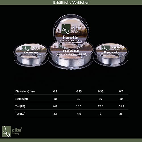 Zite Fishing Fluorocarbon Vorfach-Schnur für Barsch Angeln