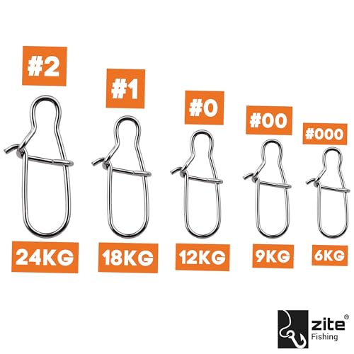 Zite Fishing Karabiner-Snaps zum Spinnfischen – Einhänger Vorfach-Wirbel Angeln – 5 Größen Angelwirbel für Forellen-Köder, Hecht-Köder & Barsch-Köder in Box – #000-#2