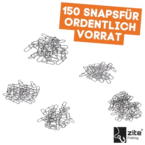 Zite Fishing Karabiner-Snaps sind die perfekte Wahl für Spinnfischer, die Qualität und Vielseitigkeit suchen. 150 Vorfachwirbel in 5 Größen sorgen für schnellen Köderwechsel und effizientes Angeln. Inkl. praktischer Sortierbox.